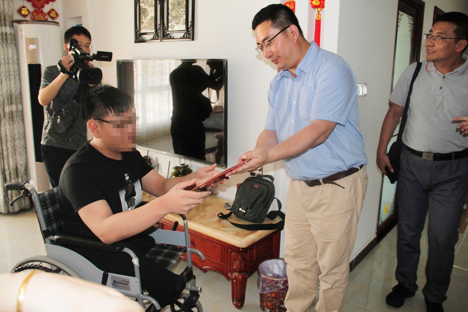 关爱新生,西安交大在路上。7月25日下午,由西安交大招生办主任訾艳阳、学生处副处长王欢带队,招生办、学生处、宣传部等部门一行八人看望了一位特殊的交大新生——小伟。小伟今年以657分的高分被西安交大工科试验班(电类)录取。 阳光帅气的小伟在2岁时因为一次事故,导致身体不便,日常出行需要坐轮椅,生活也离不开父母的照顾。到了入学年龄,由于情况特殊,小伟未能进入小学就读。“但是他特别好学,没有老师教,他就自己在家看书自学”,提到儿子,小伟母亲张女士非常自豪。 心中有梦想,人生就有航向。小伟11岁时,在希望小学的帮助下,终于如愿以偿进入了课堂。由于一直勤奋自学,从没上过学的小伟直接从五年级念起,成了老师同学口中的“传奇人物”。两年后,成绩优异的小伟考上西安中学。同学们特别喜欢这个阳光开朗的“轮椅男孩”,日常上下课除了父母背上背下,同学也主动承担护送小伟上下楼的任务。西安中学不但减免了他的学费,还在高三来临时送给他一份珍贵的礼物。经过全班同学一致同意,学校将小伟所在班级搬至一楼。不需要同学帮助,能够独立进出教室,这对自强自立的小伟来说是最好的关怀。